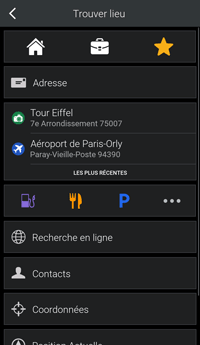 Trouvez facilement les parkings, les stations-service, les hôtels, les restaurants, et plus encore. En outre, à partir de l'application, vous pouvez effectuer des recherches sur Yelp pour trouver encore plus d'emplacements supplémentaires